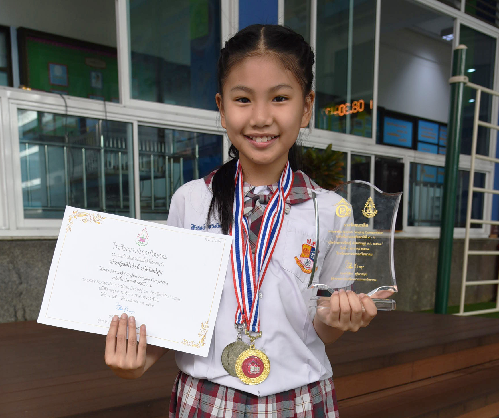 1.รางวัลชนะเลิศเหรียญทองถ้วยพระราชทานสมเด็จพระเทพรัตนราชสุดาฯสยามบรมราชกุมารี จากการแข่งขันประวัติศาสตร์เพชรยอดมงกุฎ ระดับชั้น ป.4-6 จัดโดยมูลนิธิทุนการศึกษาพระพรหมมังคลาจารย์ (ดร.เจ้าคุณธงชัย) เมื่อวันที่ 25 พฤศจิกายน ณ โรงเรียนสตรีวิทยา