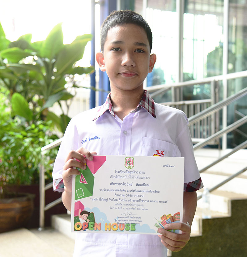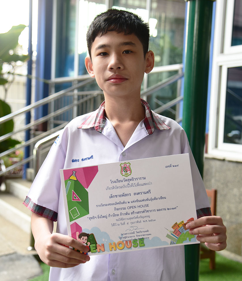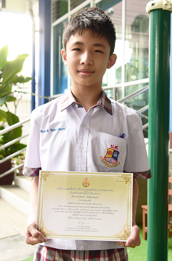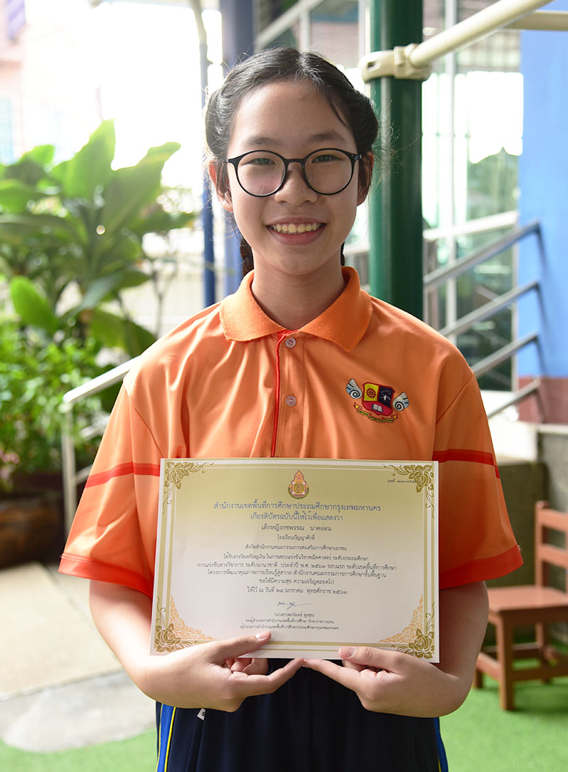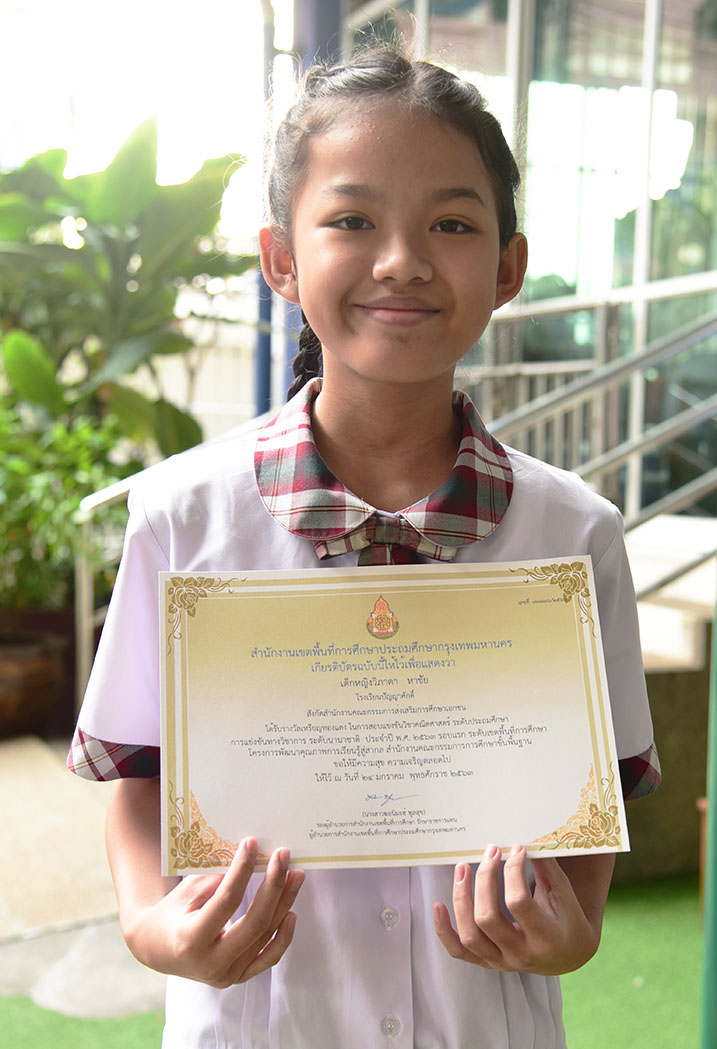 ได้รับรางวัลผ่านเกณฑ์ (รอบที่ 1) จากการแข่งขันสอบเข้าโครงการพัฒนาอัจฉริยะภาพทางวิทยาศาสตร์และคณิตศาสตร์ (วิทยาศาสตร์ ป.3) จัดแข่งขันโดย สถาบันส่งเสริมการสอนวิทยาศาสตร์ ฃและเทคโนโลยี กระทรวงศึกษา เมื่อวันที่ 17 ธันวาคม 2562
